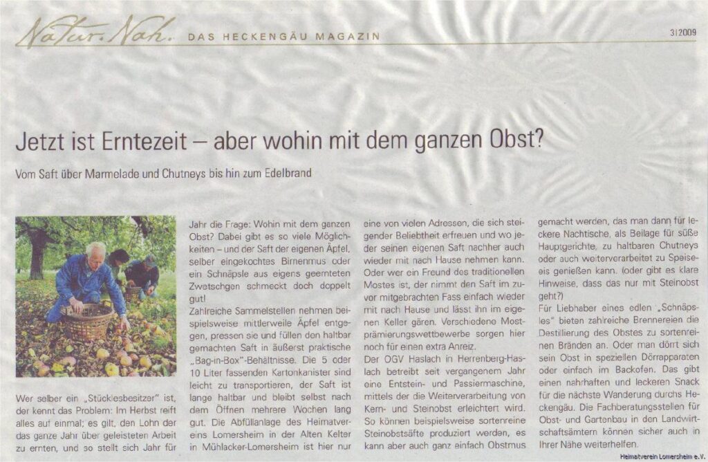 Der Ausschuß für Umwelt und Technik des Mühlacker Gemeinderat hat am 20.01.2009 einstimmig dem Antrag zugestimmt, dass der Heimatverein zukünftig den Kelterbetrieb in Lomersheim übernimmt. Zurück […]