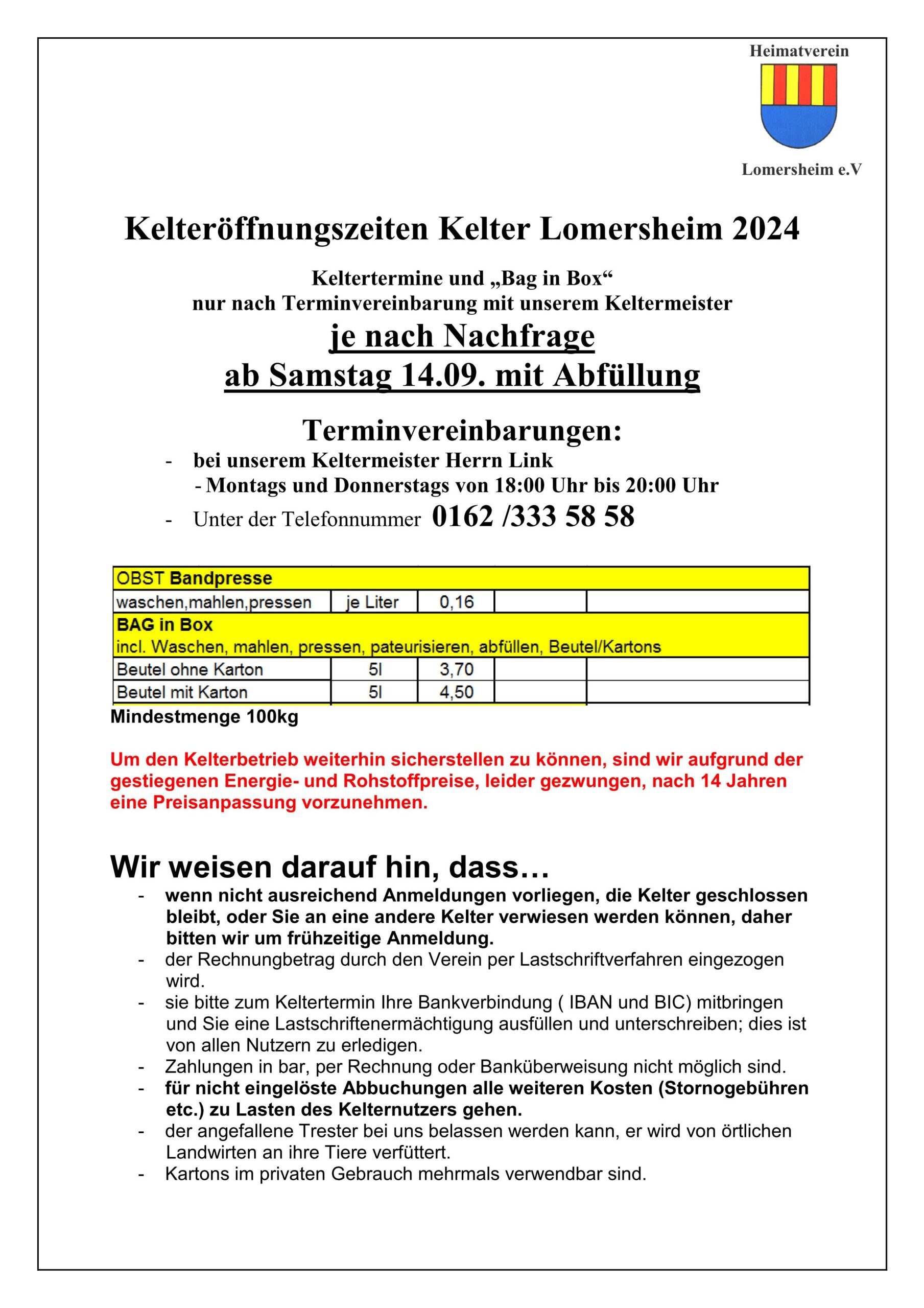 die Keltersaison 2024 ist beendet und die Kelter Lomersheim geschlossen.