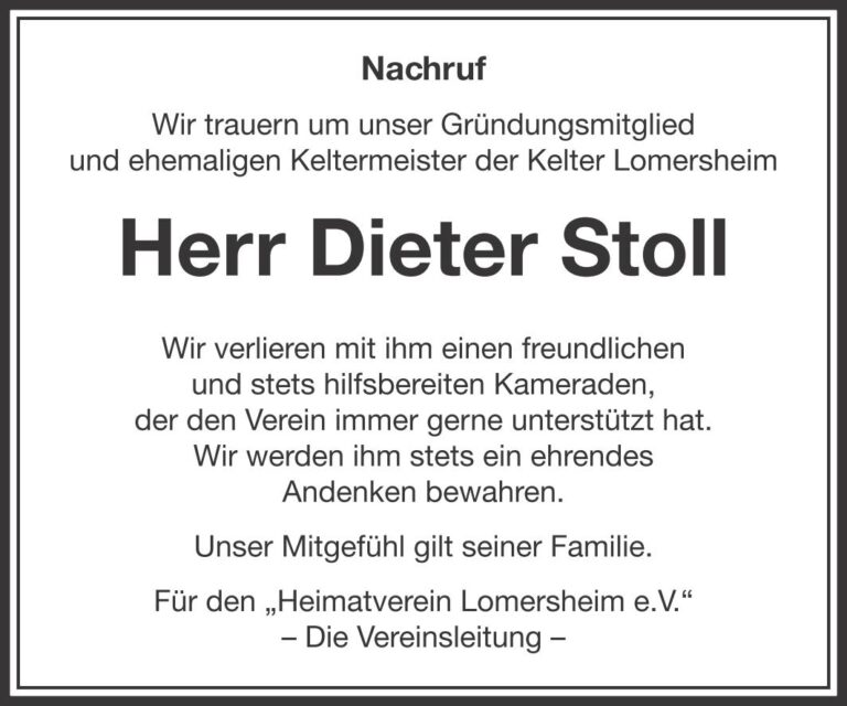 Nachruf Dieter Stoll